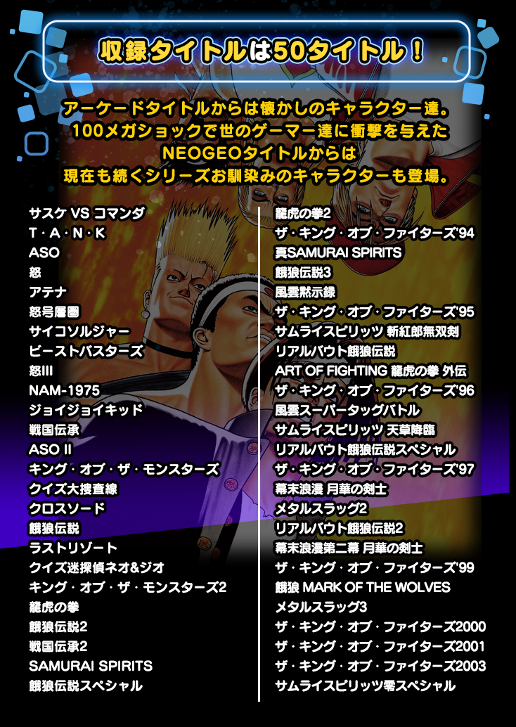 収録タイトルは懐かしめのものを中心に50タイトル。これらのタイトルに関するイラスト(キャラ選択時の顔グラなど)でパズルができます。